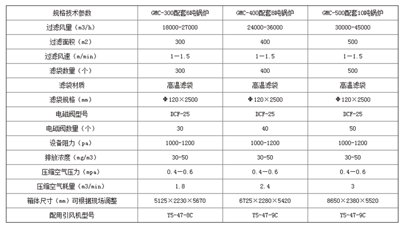 常用鍋爐除塵器技術參數