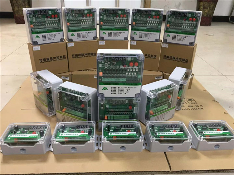 按功能鍵,指示燈 前面的數(shù)字1、2、3、4分別代表相應的項目設置,后面的數(shù)字表示相應項目下設置的值。一般情況下輸出路數(shù)是幾路就設置成幾路,脈沖周期設置為5分鐘,脈沖間隔設置30秒,脈沖寬度設置為0.1秒。脈沖控制儀輸出一個電信號持續(xù)時間稱為脈沖寬度。控制儀輸出連續(xù)兩個電信號之間的間隔時間稱為脈沖間隔。一個脈沖到一個脈沖之間的停止時間稱為循環(huán)間隔。控制儀可以根據(jù)清灰要求,調整脈沖寬度和脈沖間隔,對除塵器進行循序巡回定時清灰。控制儀由高性能微處理器(CPU),控制集成電路,LED數(shù)碼顯示,光電隔離環(huán)節(jié),大功率晶體管驅動等組成,工作穩(wěn)定可靠,外殼采用優(yōu)質工程防水塑殼。本系列控制儀可在1-96路任意選擇輸出,亦可根據(jù)實際需要設計特殊規(guī)格的控制儀。