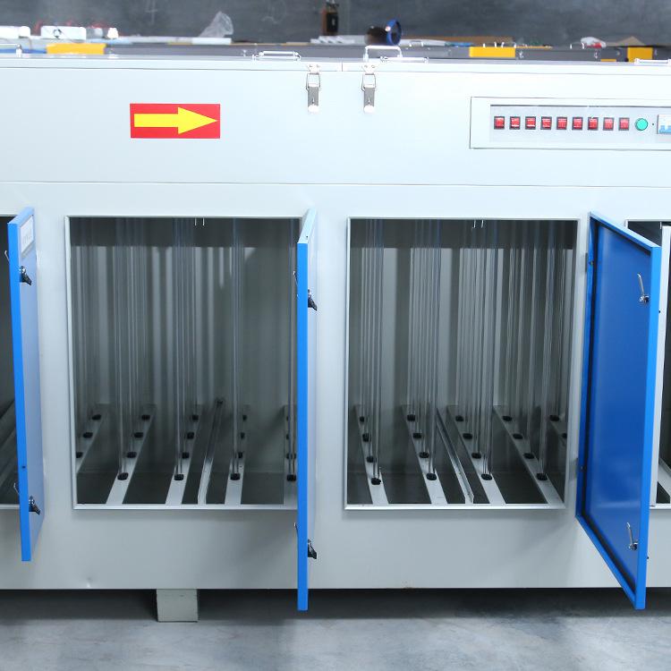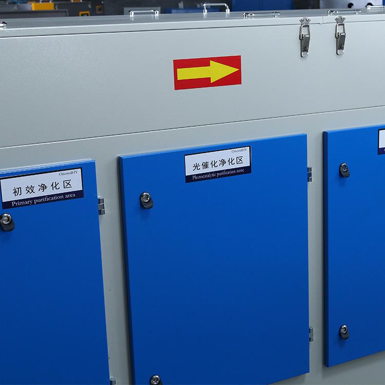 采用了獨特的吸附-分解-碳化工藝技術(shù)設(shè)計,無需再生處理原料,無需專人負(fù)責(zé),不產(chǎn)生二次污染.采用脈沖高壓高頻等離子體電源和齒板放電裝置,使其產(chǎn)生高強(qiáng)度、高濃度、高電能的活性自由基,在毫秒級的時間內(nèi),瞬間對經(jīng)過UV紫外線光解區(qū)進(jìn)入等離子分解區(qū)的氣體內(nèi)殘留的有害廢氣分子進(jìn)行氧化還原反應(yīng),將廢氣中的污染物降解成二氧化碳和水及易處理的物質(zhì).利用催化氧化劑的強(qiáng)氧化性和高吸附性,持續(xù)地對等離子體未處理盡的污染物和生成的物質(zhì)進(jìn)行催化氧化反應(yīng),使有害廢氣經(jīng)多級凈化后最終達(dá)標(biāo)排放.等離子光氧一體機(jī)