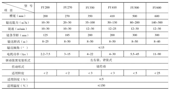 三、FU系列刮板輸送機性能參數(shù)